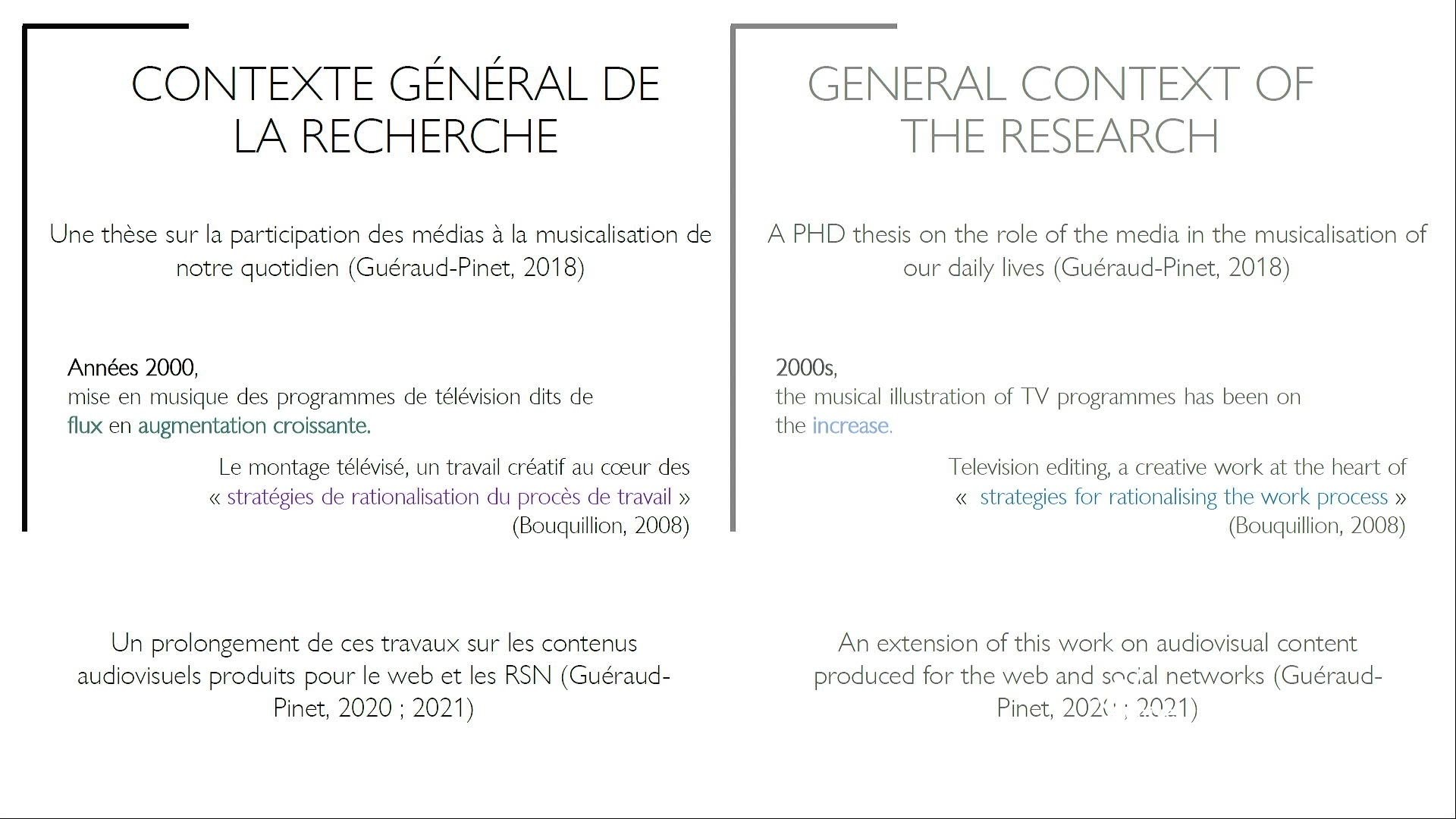 Guylaine Guéraud-Pinet (Université Grenoble Alpes) : Production audio-visuelle numérique et création rationalisée : la musique dans les pratiques de montage des vidéos d’info-divertissement en ligne.